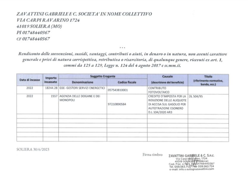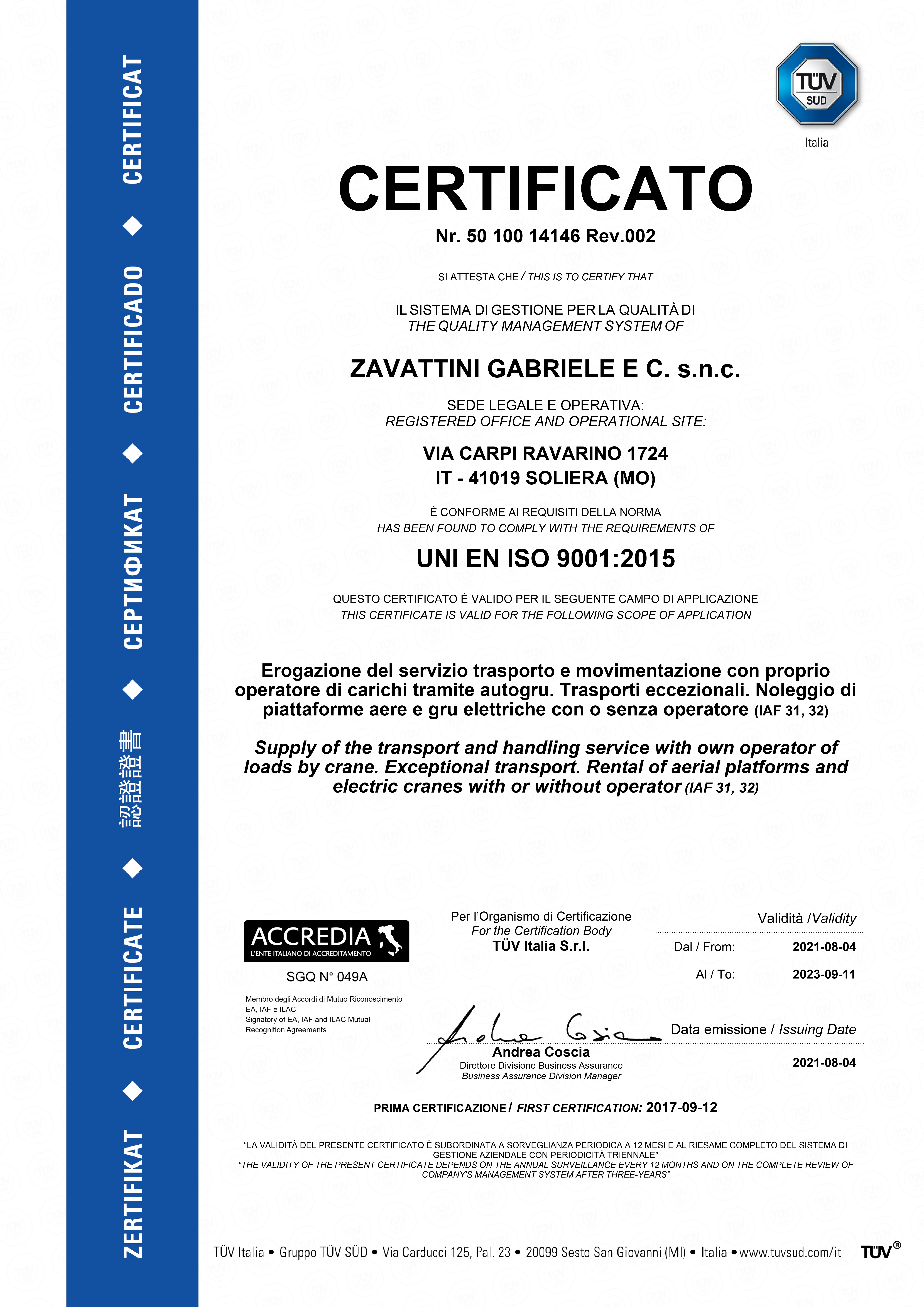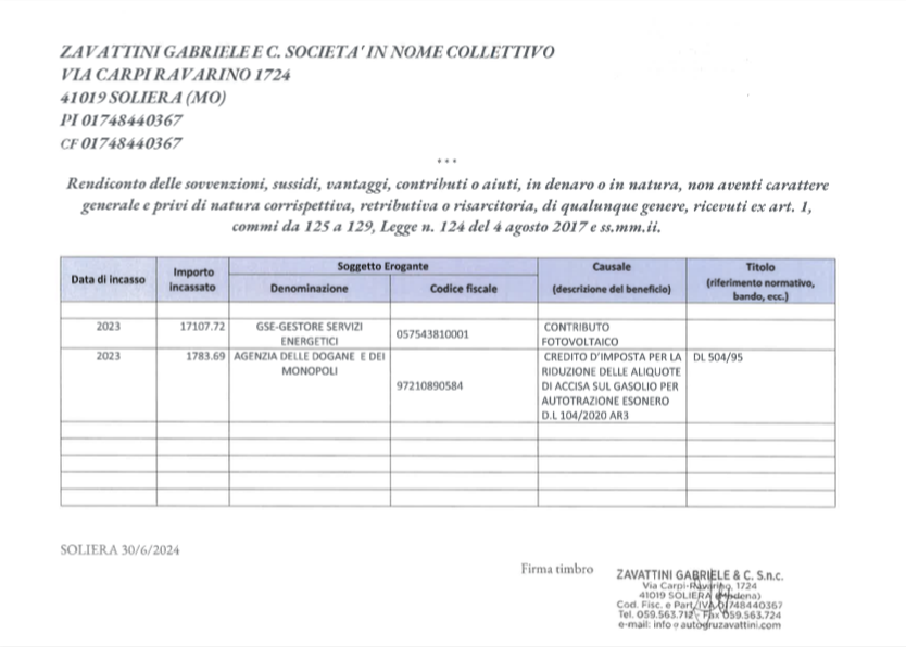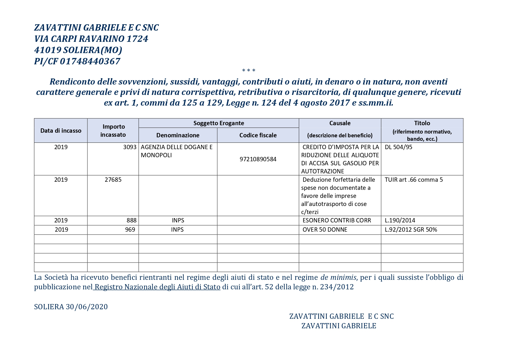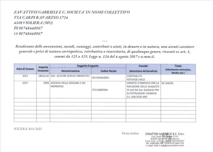 I dati personali da Lei inseriti, sono trattati da ZAVATTINI GABRIELE E C. – Via Carpi Ravarino, 1724 – 41019 SOLIERA(MO) – 059 563712 per finalità connesse alla fornitura dei servizi da Lei richiesti (a titolo esemplificativo: richiedere informazioni, registrarsi al sito per ricevere vantaggi e offerte, ottenere preventivi, effettuare pagamenti, acquistare beni e riceverli presso un domicilio da Lei indicato, effettuare una prenotazione, scambiare documenti).